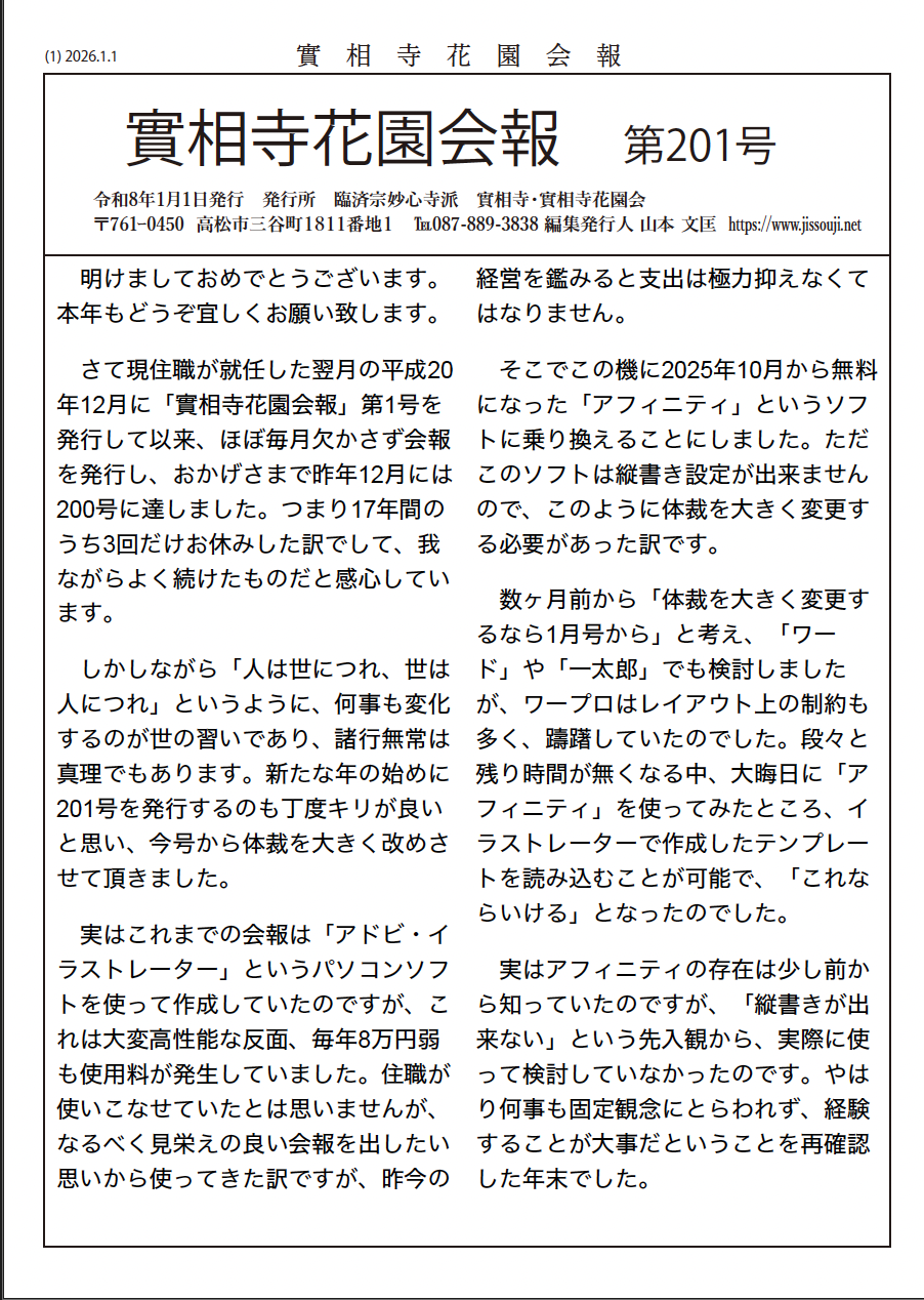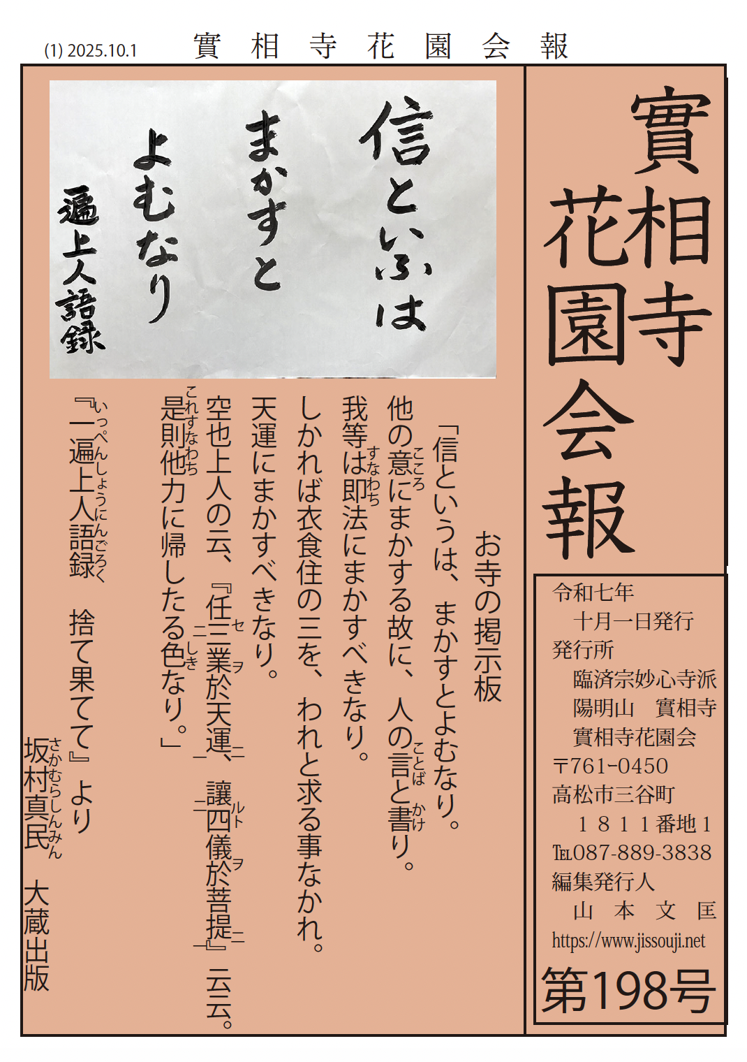 住職が妙心寺派『花園』誌に一年間執筆した法話